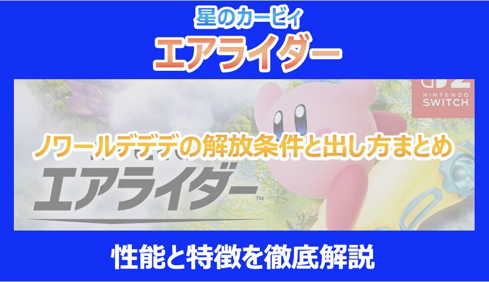 この記事を読んでいる方は、隠しキャラクターである「ノワールデデデ」の出し方や、その尖った性能の使いこなし方が気になっていると思います。 今作『星のカービィ エアライダー(2025)』において、見た目のインパクトと意外な性能差で話題を呼んでいるこの機体ですが、入手するには少々骨の折れる手順が必要です。 また、手に入れたものの「すぐに撃墜されてしまう」と悩んでいる方も多いのではないでしょうか。