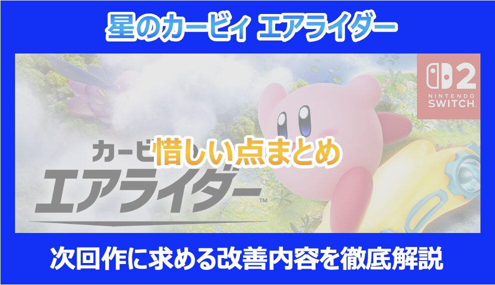 この記事を読んでいる方は、話題の新作『カービィのエアライダー』を購入しようか迷っている、あるいはプレイ中で「ここがもう少しこうなら…」というモヤモヤを感じていることだと思います。 特に、前作から22年ぶりの新作ということで期待値が高い分、実際のプレイフィールにおける「惜しい点」や、次回作に向けた「改善点」は気になるところでしょう。