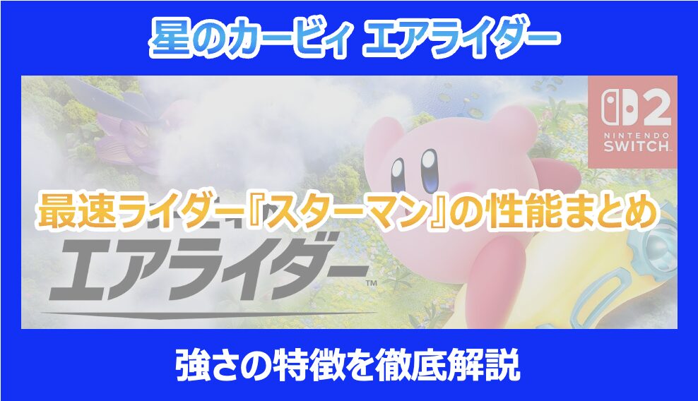 この記事を読んでいる方は、2025年11月20日に発売が迫った待望の新作『星のカービィ エアライダー』の中でも、特に「スターマン」の性能が気になっているのではないでしょうか。 「スターマンが最速らしい」「シティトライアルで強いって本当?」といった多くの噂が飛び交っています。