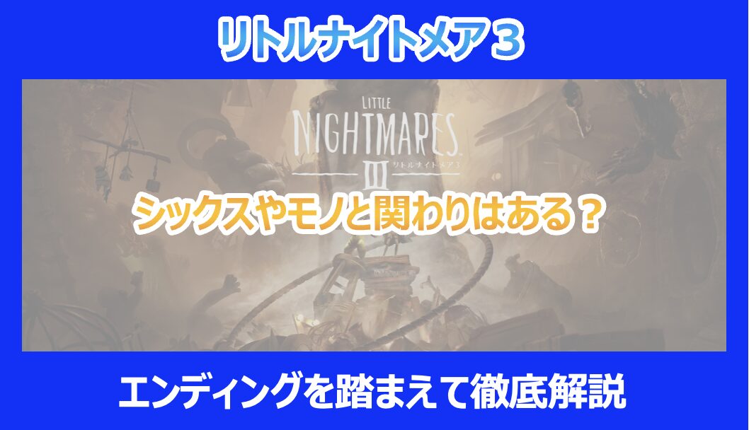 この記事を読み終える頃には、リトルナイトメア3の物語におけるシックスやモノの位置づけ、そしてシリーズ全体を貫くテーマについての疑問が解決しているはずです。