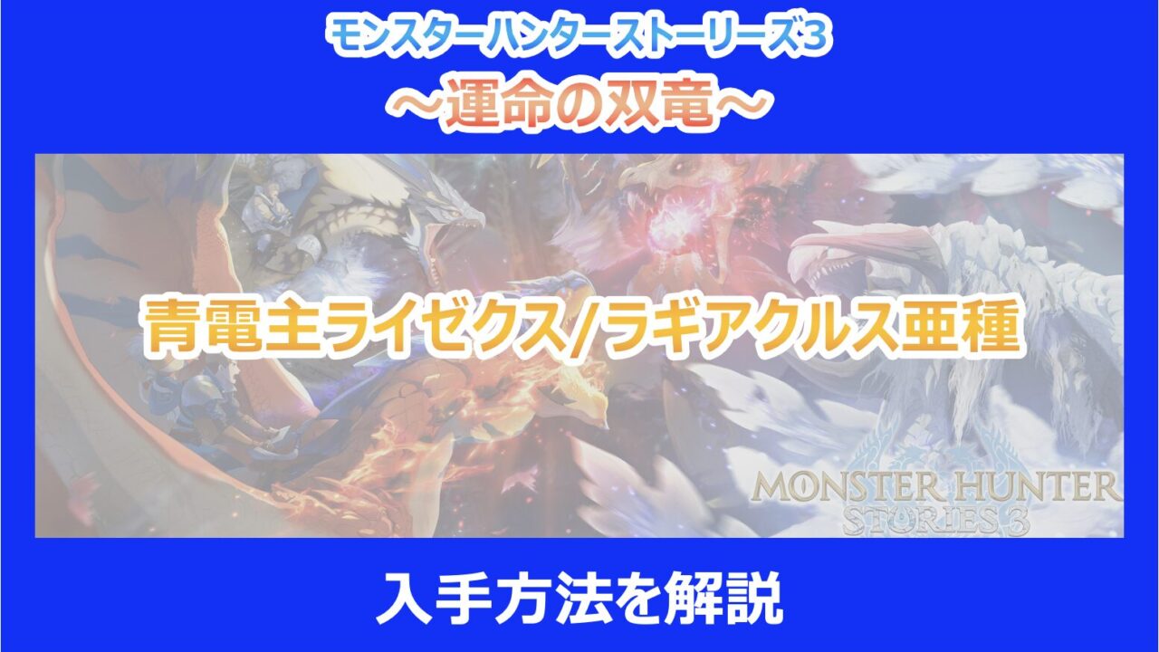 この記事を読んでいる方は『モンスターハンターストーリーズ3 ~運命の双竜~』に登場する青電主ライゼクスとラギアクルス亜種のことが気になっていると思います。