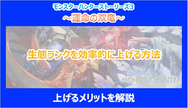 この記事を読んでいる方は『モンスターハンターストーリーズ3 ~運命の双竜~』の生態ランクの効率的な上げ方やメリットが気になっていると思います。