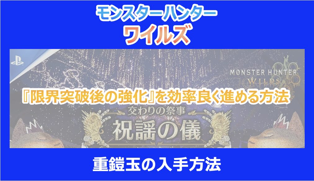 この記事を読んでいる方は、モンハンワイルズのエンドコンテンツである「防具の限界突破」における素材不足、特に「重鎧玉」が足りずに強化が止まってしまっていることが気になっていると思います。