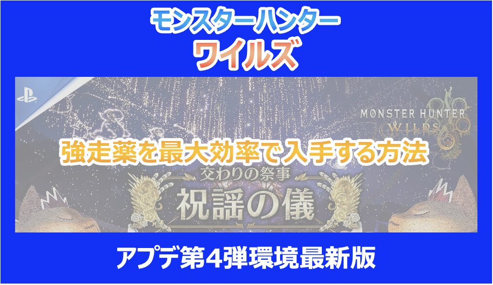 今回は、MHWsアプデ第4弾環境における強走薬の最高効率入手方法について解説しました。