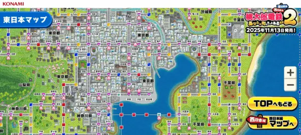 本作における最大の特徴は、何と言っても「東日本編」と「西日本編」という2つの異なるマップが収録されている点です。 これは、過去に発売された『桃太郎電鉄12 西日本編もありまっせー!』を彷彿とさせますが、今回はスケールが格段にアップしています。