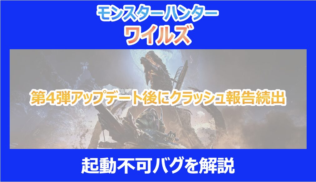 一つ目は、Steamランチャーからプレイボタンを押した数秒後に、何のエラーメッセージも出ずにデスクトップに戻される「サイレントクラッシュ」です。これはPCゲーム特有の現象ですが、ワイルズにおいては過去のアップデートでも散見されました。しかし今回はその頻度が桁違いです。裏でプロセスだけが動き続け、メモリを食いつぶしているケースもあり、タスクマネージャーからの強制終了を余儀なくされる場合もあります。