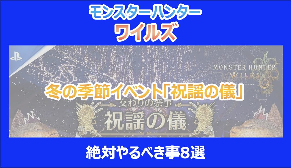 冬の季節イベント「祝謡の儀」は、見た目装備を楽しむだけでなく、ハンターとしての地力を底上げする絶好の機会です。
