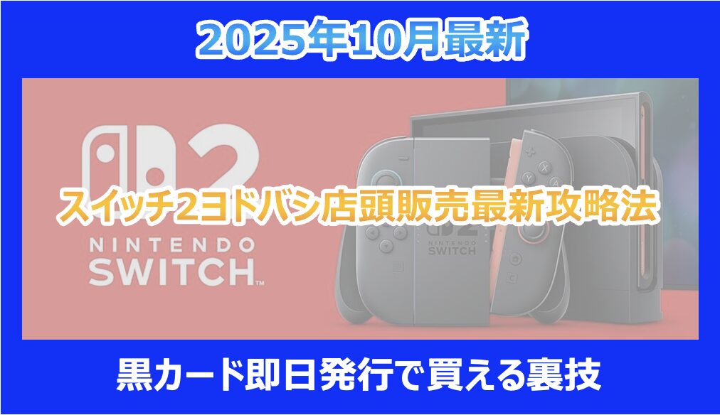 この記事を読んでいる方は、「なんとしてもスイッチ2を店頭で、特にヨドバシカメラで手に入れたい。 でも、ヨドバシは“黒カード”がないと買えないって本当。 今持ってない自分は、店頭在庫を見つけても指をくわえて見ているしかないのか。」そんな焦りや疑問をお持ちだと思います。
