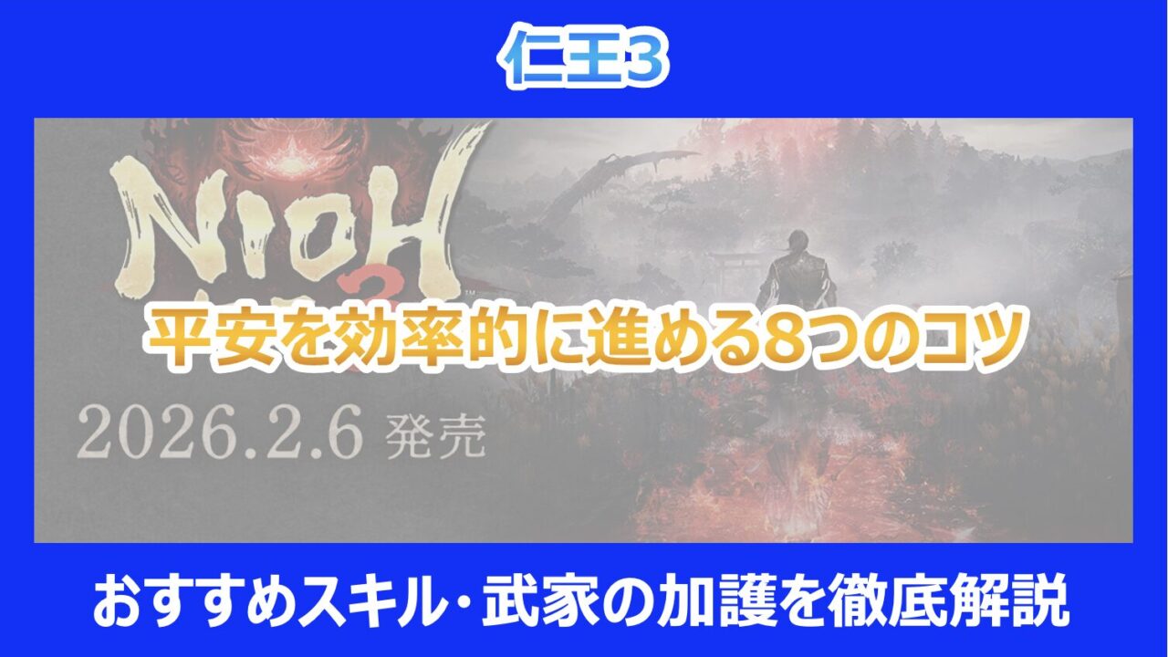『仁王3』の追加コンテンツや後半戦として登場する「平安時代」エリア。 ここは敵の強さが跳ね上がるため、闇雲に進めると返り討ちに遭います。 効率よく進めるためには、明確な「攻略順序」が存在します。