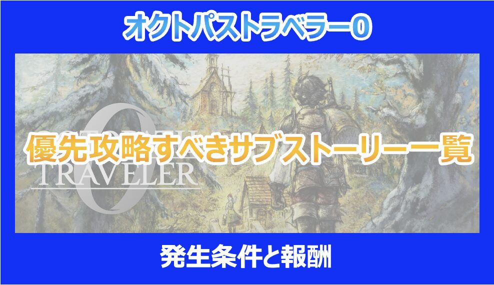 この記事を読んでいる方は、膨大な数存在するサブストーリーの中で、どれを優先して消化すべきか、あるいは効率的に戦力を強化できるクエストはどれなのかが気になっていると思います。特に『オクトパストラベラー0(大陸の覇者)』は、メインストーリーだけでなくサブコンテンツの量が凄まじく、全てを網羅しようとすると途方に暮れてしまうことも少なくありません。