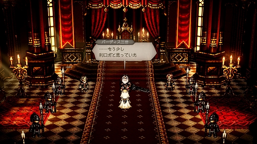 • パルテティオ(商人): BPパサーとして味方を支援しつつ、自身の底力でBPをMAXにして「傭兵よび(異邦の暗殺者や古兵)」を使用。金銭を消費して超火力を叩き出します。