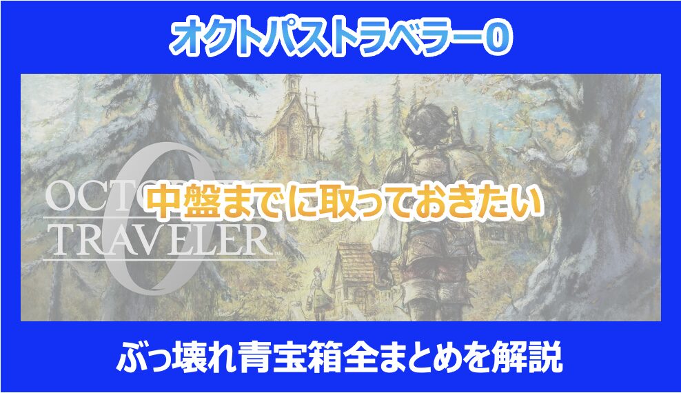 この記事を読んでいる方は、「フィールドで見かける青い宝箱が開けられなくてモヤモヤしている」「中盤の攻略を楽にするための強力な装備がどこにあるのか知りたい」と気になっていると思います。特に『オクトパストラベラー0(大陸の覇者)』では、通常の赤い宝箱とは異なり、特定の条件を満たさないと開けられない「青宝箱」にこそ、ゲームバランスを揺るがすような強力なアイテムが眠っています。