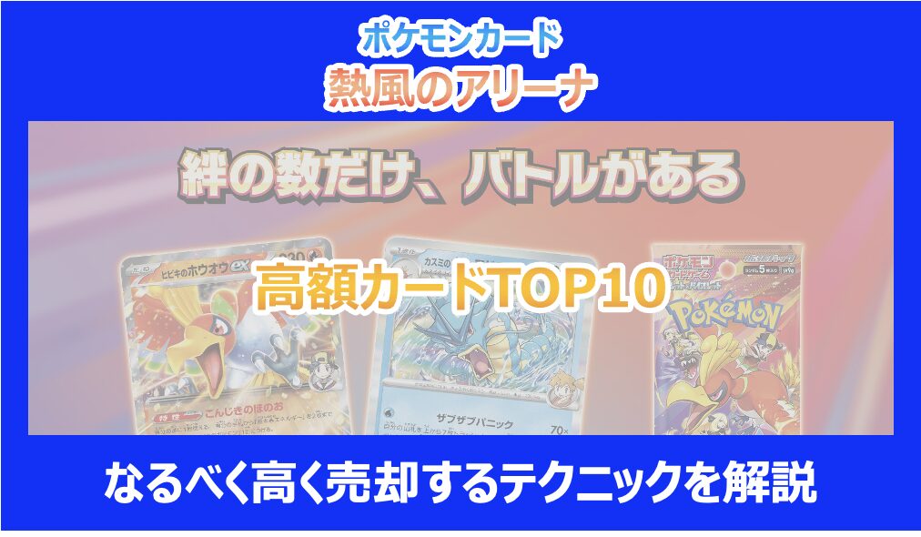 この記事を読んでいる方は、最新弾「熱風のアリーナ」の開封結果に一喜一憂していたり、手に入れたカードの価値がどれくらいなのか気になっていると思います。