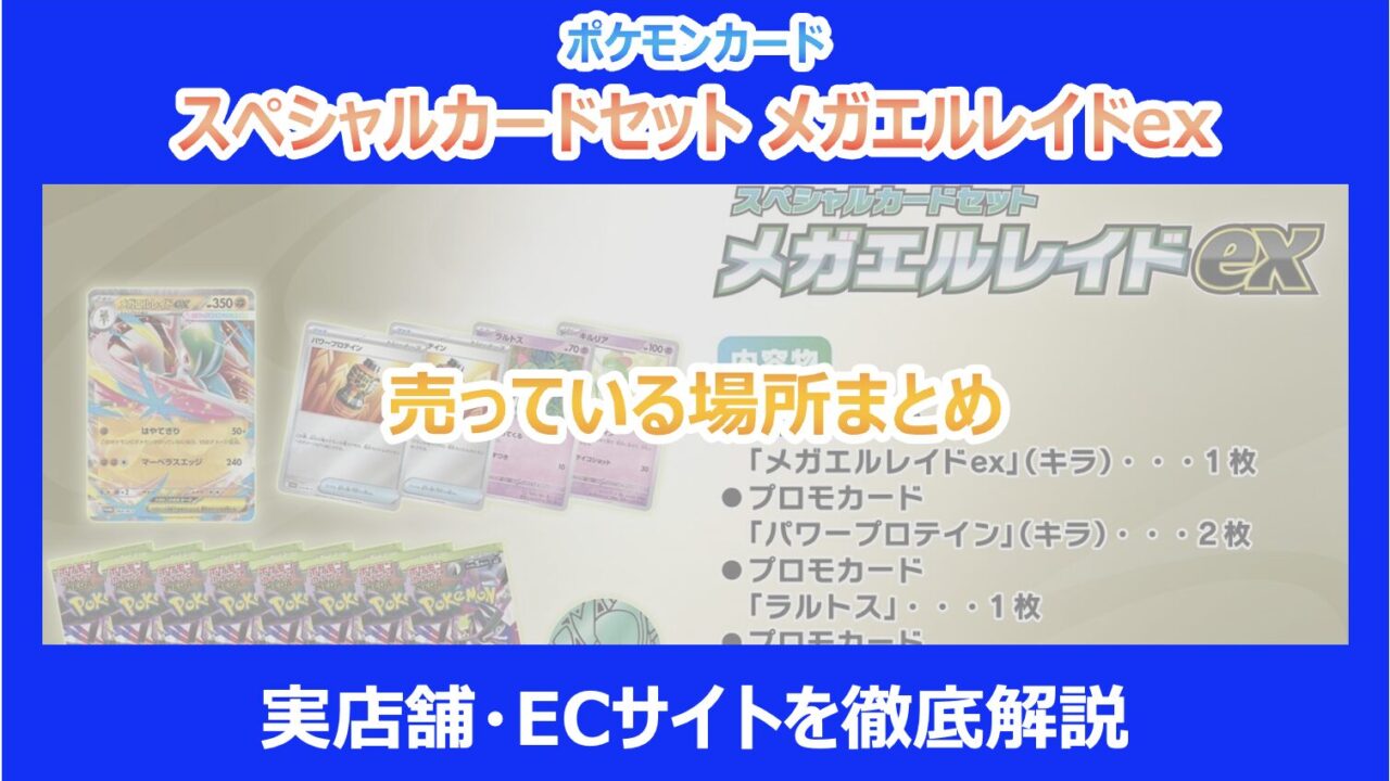 この記事を読んでいる方は、話題沸騰中の「スペシャルカードセット メガエルレイドex」がどこで買えるのか、確実に手に入れるにはどうすれば良いのかが気になっていることと思います。 発売前から大きな注目を集めているこのセットですが、昨今のポケカ人気も相まって、どこに行けば売っているのか、ネットで買うならどこが安全なのか、不安に思っている方も多いのではないでしょうか。