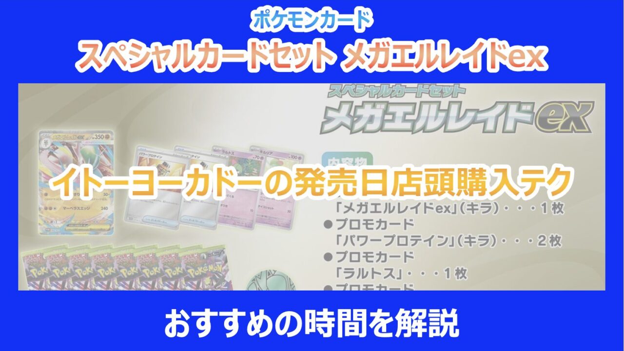 この記事を読み終える頃には、発売日当日にイトーヨーカドーでスマートに「メガエルレイドex」を購入するための立ち回りと、具体的な並び時間の疑問が解決しているはずです。