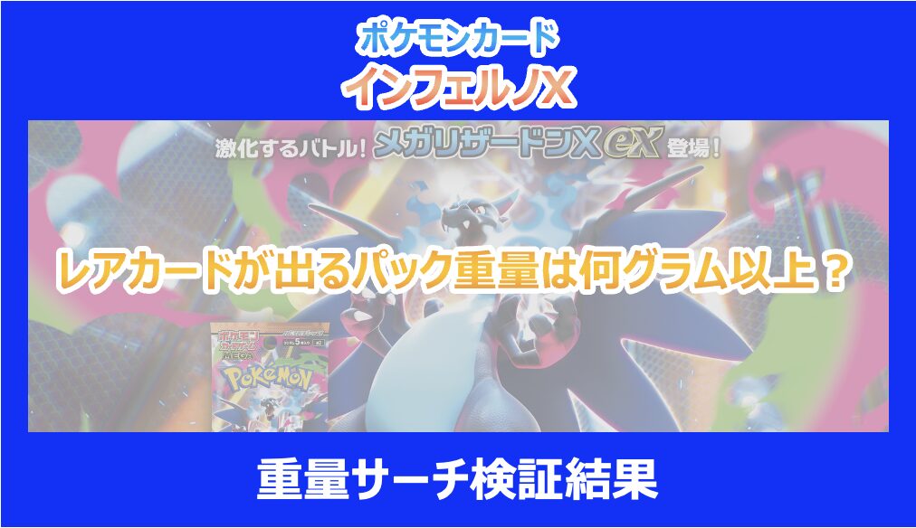 この記事を読んでいる方は、最新弾「インフェルノX」のレアカードを効率よく引き当てたい、サーチの重量ラインが気になっていると思っているはずです。