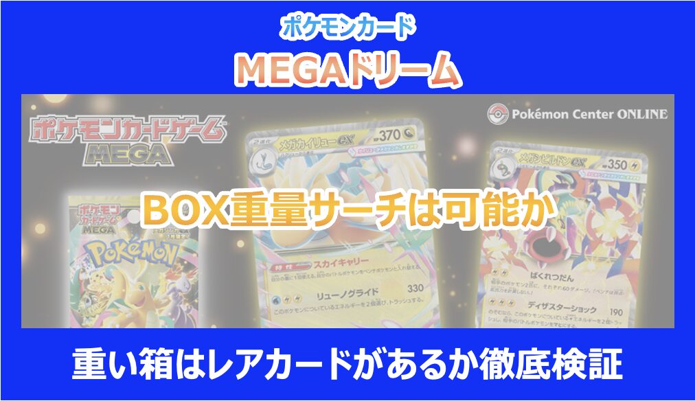 この記事を読んでいる方は、新弾「MEGAドリーム」のBOX購入を検討されている中で、特に「重いBOXを選べばレアカードが出るのか?」という点や、サーチ行為の是非、そして実際の検証結果が気になっていると思います。