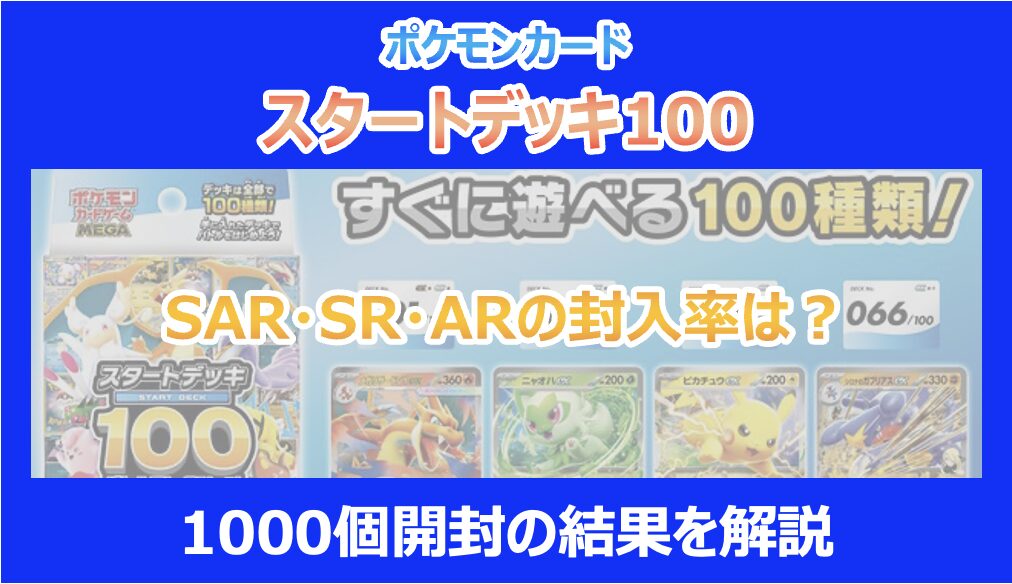 この記事を読んでいる方は、新しく登場した「スタートデッキ100(メガスタートデッキ100バトルコレクション)」の封入率や、当たりカードの正体が気になっていると思います。