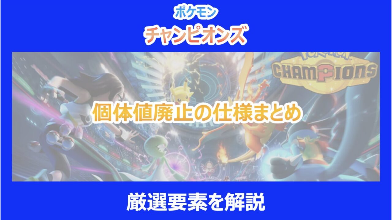 この記事を読んでいる方は、2026年4月8日にリリースされる「ポケモンチャンピオンズ」における個体値の仕様や厳選要素が気になっていると思います。