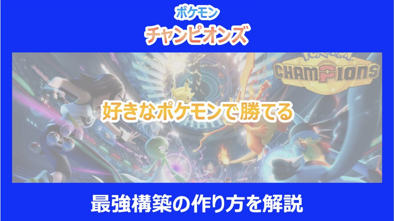 この記事を読んでいる方は2026年4月8日にリリースされる「ポケモンチャンピオンズ」において自分の好きなポケモンで勝てる最強構築の作り方が気になっていると思います。