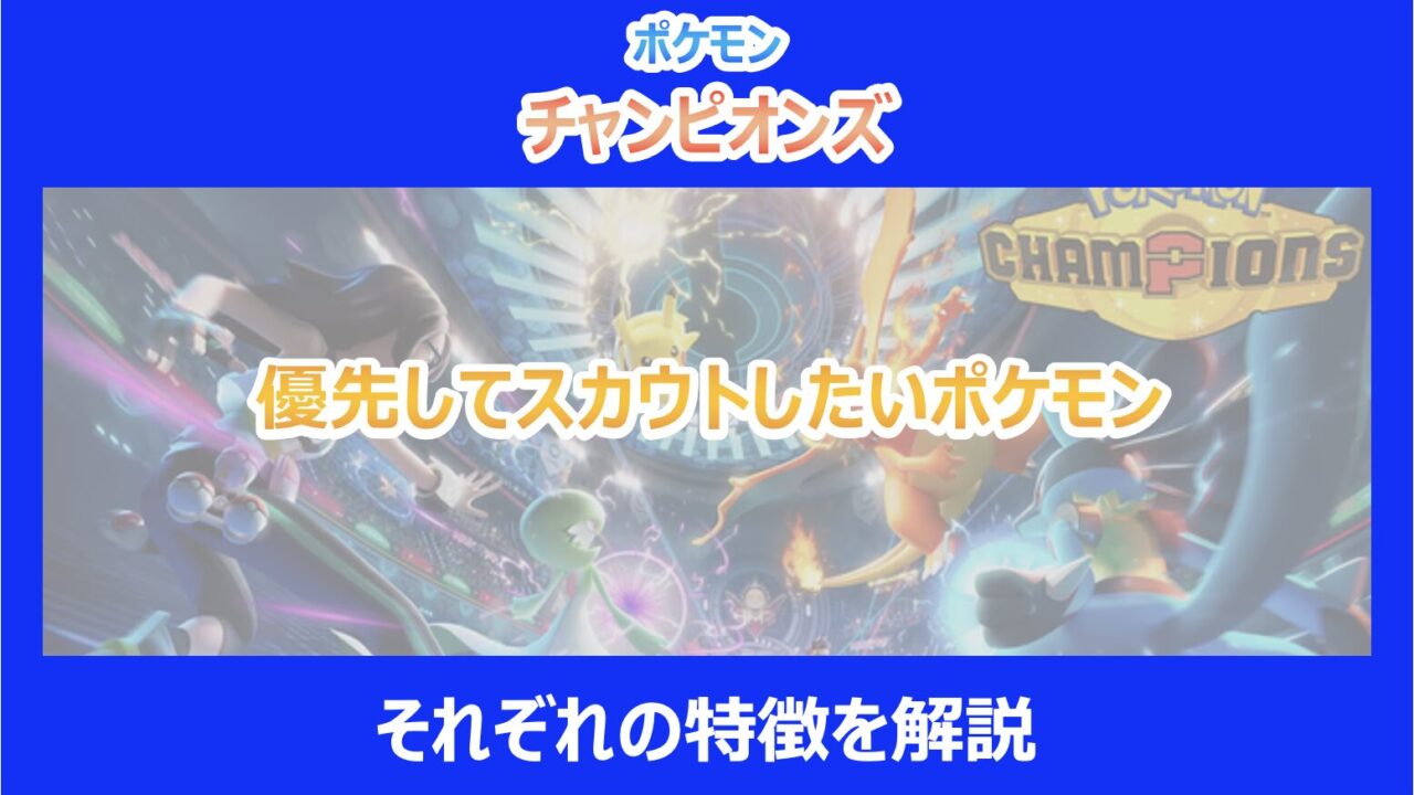 この記事を読んでいる方は4月8日リリースの「ポケモンチャンピオンズ」で、 どのポケモンを優先してスカウトすべきかが気になっていると思います。