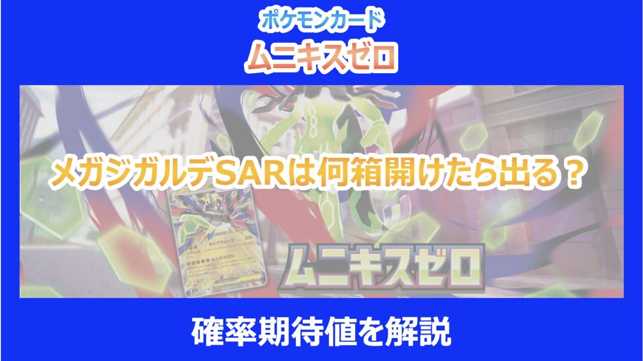 今回の目玉カードである「メガジガルデSAR」。 その圧倒的なイラストの迫力と、対戦環境を揺るがす性能から、どうしても手に入れたいと考えている方は多いはずです。 しかし、最高レアリティであるSAR(スペシャルアートレア)は、そう簡単に姿を現してはくれません。 ここでは、10カートン(120BOX)という膨大な開封データをもとに、具体的な出現確率と期待値を算出してみました。 数字を見ることで、これから開封に挑む心の準備ができるはずです。