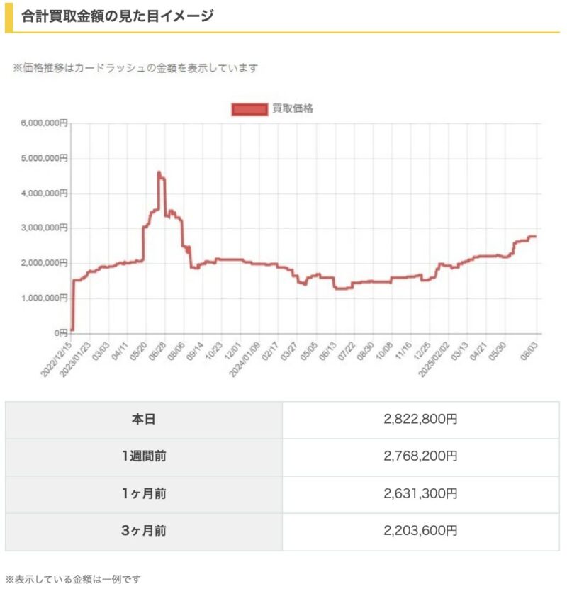 例えば、あるカードが高騰して話題になったとき、慌てて相場を調べなくても、マイページを見れば自分の資産がどれくらい増えたかが一目瞭然です。 逆に、相場が落ち着いてきたタイミングも把握できるため、売り時や買い増しの判断材料としても非常に優秀です。