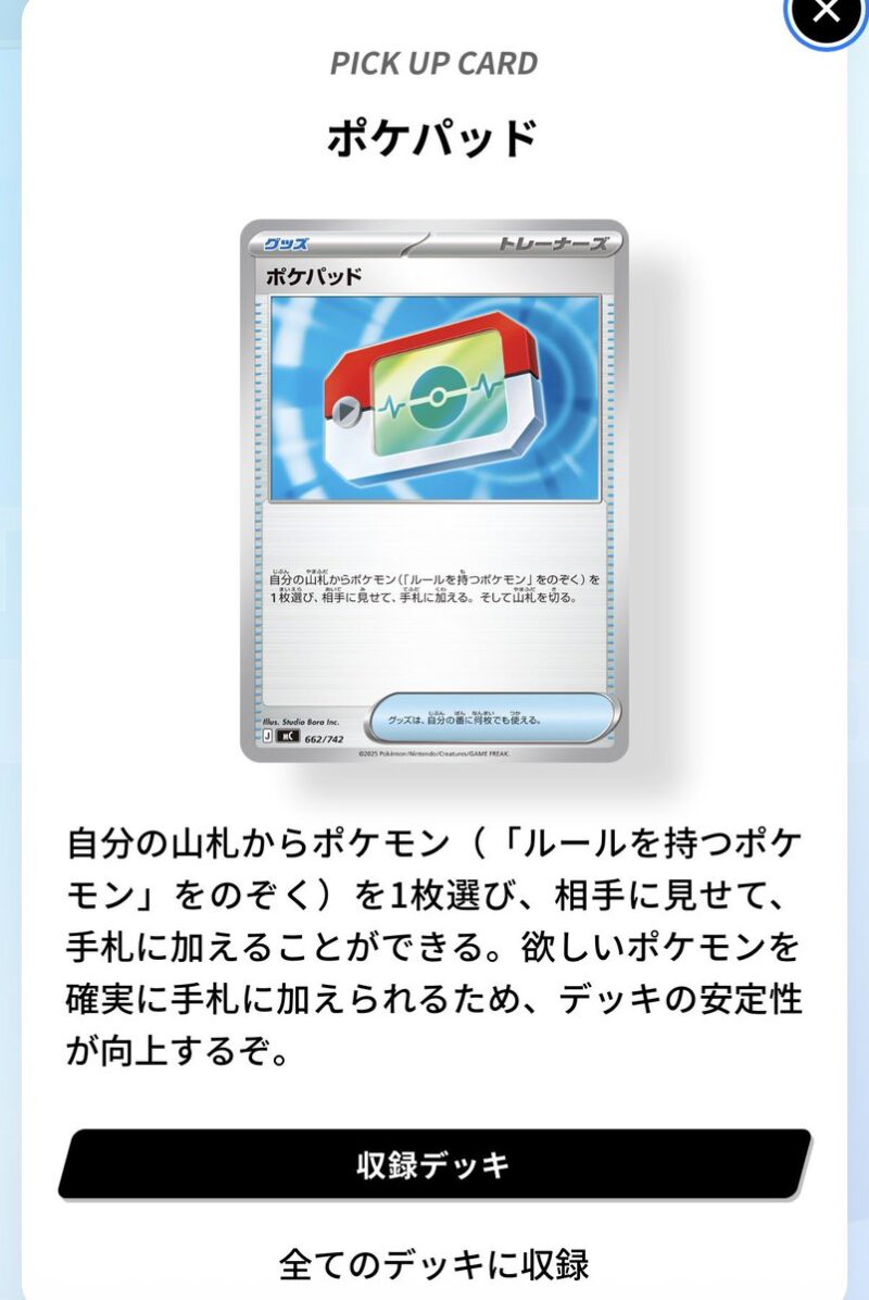 そして、今回最も注目すべきカードが、新規グッズの「ポケパッド」です。 このカードについては、次の項目で詳しく解説しますね。