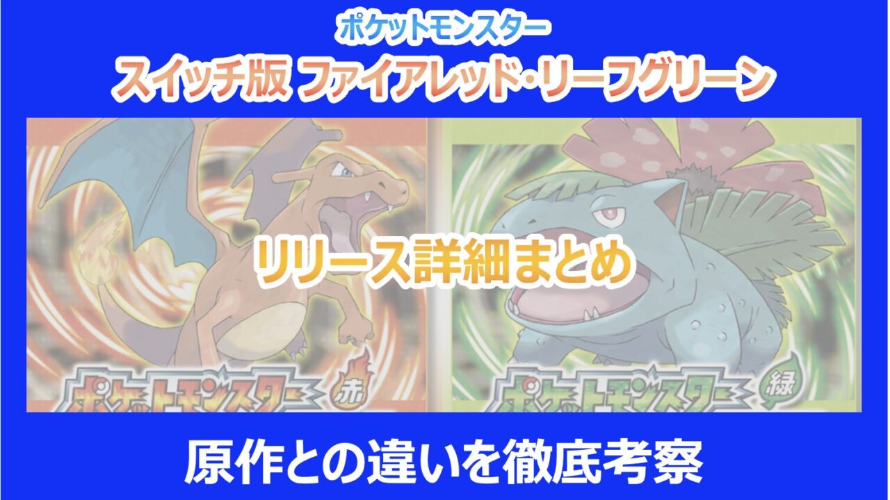 この記事を読んでいる方はスイッチ版の「ポケットモンスター ファイアレッド・リーフグリーン」のリリース詳細や、原作との違いが気になっていると思います。
