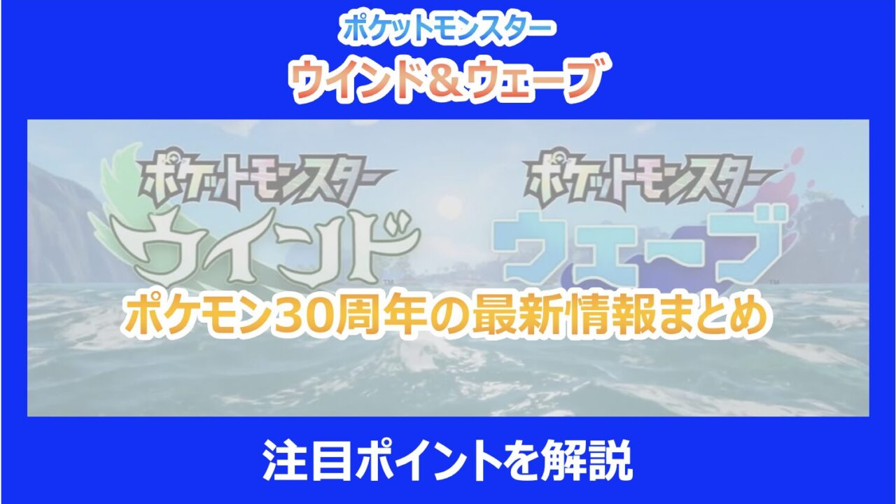 この記事を読み終える頃には「ポケモン ウインド&ウェーブ」の注目ポイントや30周年の疑問が解決しているはずです。