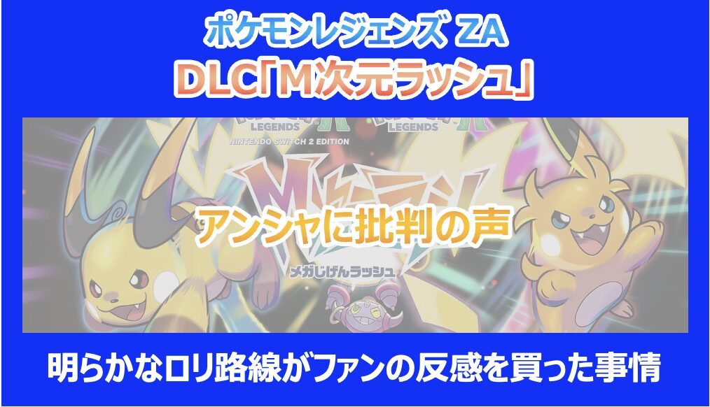 この記事を読んでいる方は、先日発表された『ポケモンレジェンズ Z-A』の追加DLC「M次元ラッシュ」に登場する新キャラクター「アンシャ」について、その可愛らしさとは裏腹に、なぜ一部で批判的な声が上がっているのか、気になっていると思います。