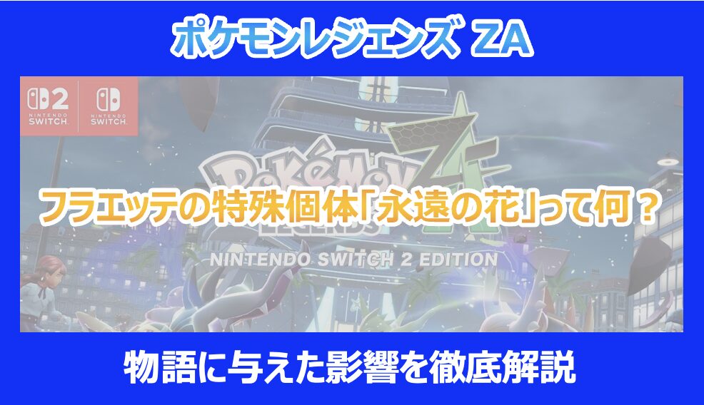 この記事を読んでいる方は、2025年発売予定の『ポケモンレジェンズ Z-A』の発表を受けて、カロス地方の謎、特にフラエッテの特殊個体「永遠の花」とは一体何なのか、気になっていると思います。