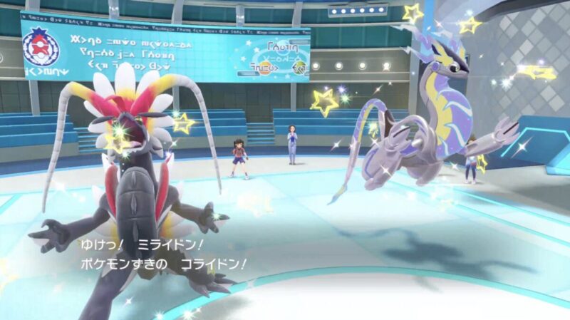 - 「スカーレット」では、色違いミライドンが受け取れます。