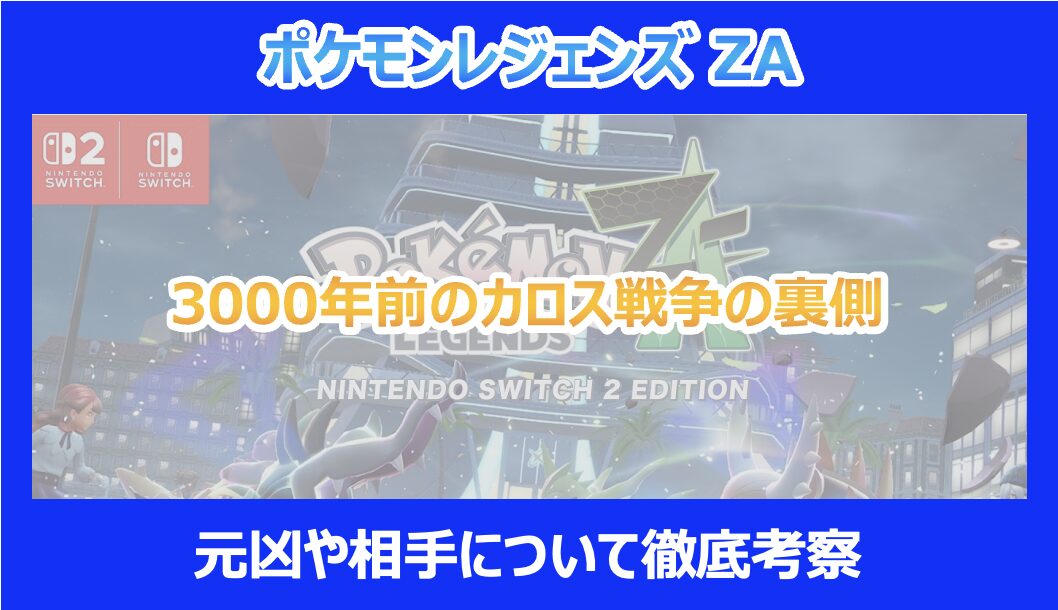 この記事を読んでいる方は、発売されたばかりの「ポケモン レジェンズ Z-A」をプレイし、作中で語られる「3000年前のカロス戦争」の謎について気になっていると思います。