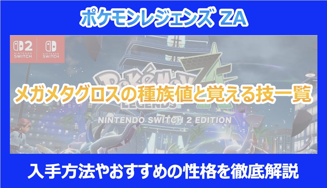 【レジェンズZA】メガメタグロスの種族値と覚える技一覧|入手方法やおすすめの性格を解説