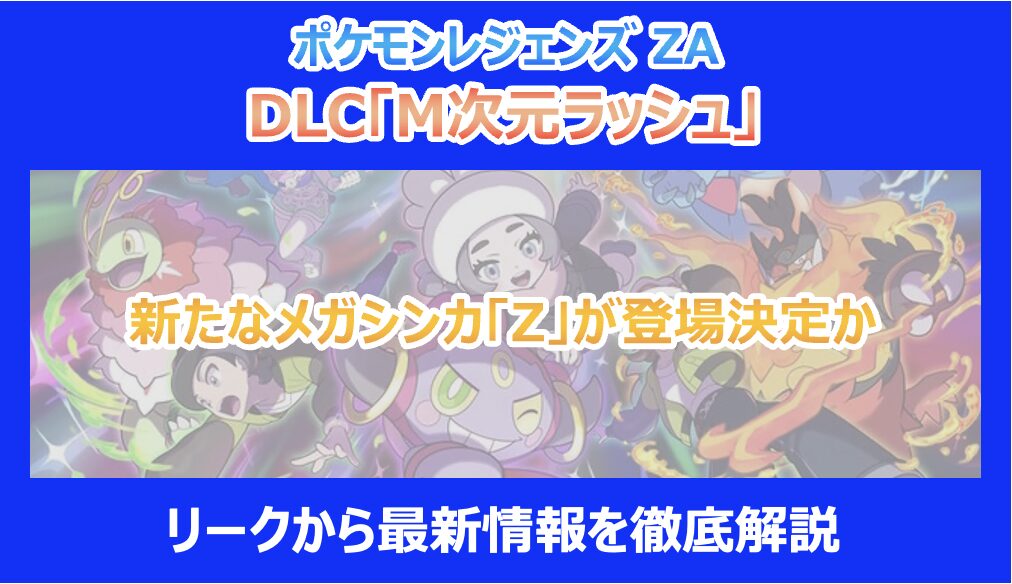 この記事を読んでいる方は、いよいよ発売が迫った『ポケモンレジェンズ Z-A』の追加DLC「M次元ラッシュ」、そして噂されている謎の新要素「メガシンカZ」について、詳しい情報が気になっていると思います。