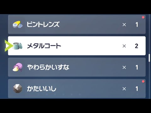これがメタルコートの最も重要な役割です。 特定のポケモンにメタルコートを持たせた状態で「通信交換」を行うことで、そのポケモンは進化を遂げます。 本作では、この方法でしか進化できないポケモンが存在するため、図鑑の完成を目指す上でも必須のアイテムと言えるでしょう。 レベルアップや他のどうぐでは進化しないため、この仕様を正しく理解しておくことが重要です。