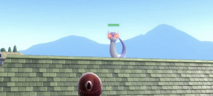 ミニリュウは非常に警戒心の強いポケモンです。 普通に走って近づくとすぐに気づかれ、逃げられてしまうことがあります。 Lスティックを押し込むことでできる「しゃがみ移動」で、音を立てずにゆっくりと、確実に距離を詰めましょう。