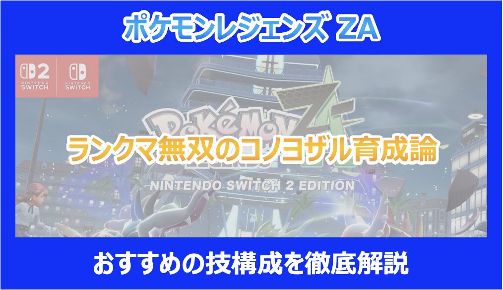 今回は、ポケモンZA「M次元ラッシュ」環境における、ランクマ無双コノヨザルの育成論を紹介しました。