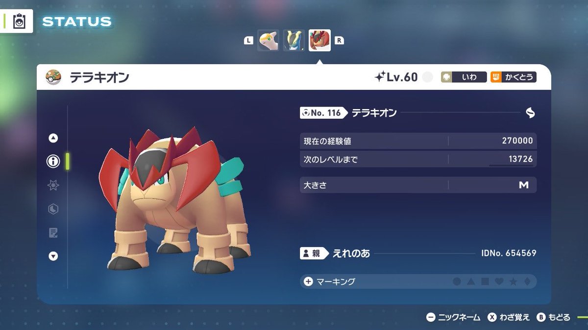 今シーズン、もっとも警戒すべき物理アタッカーの一つが「テラキオン」です。 高い攻撃種族値から放たれる「もろはのずつき」は、半減でも受け出しが困難なほどの火力を誇ります。