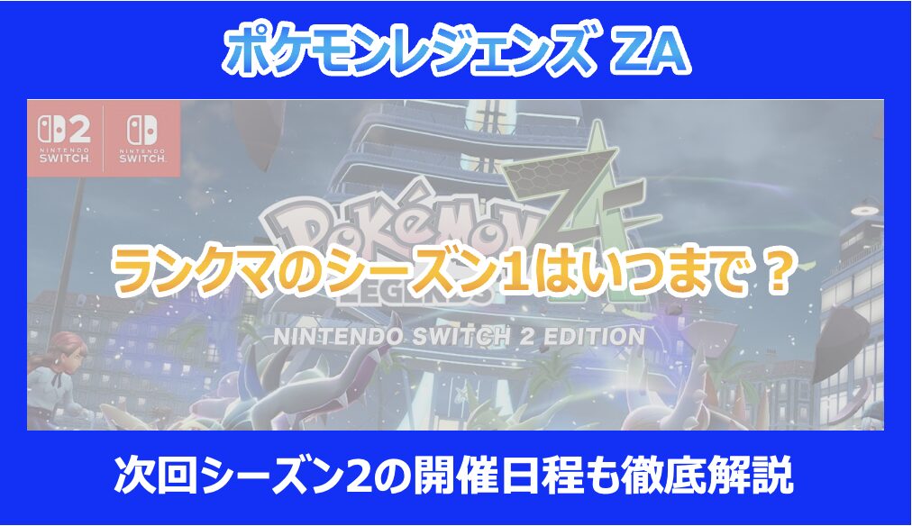 この記事を読んでいる方は、「ポケモンレジェンズ Z-A」のランクマッチ(ZAバトルクラブ)のシーズン1がいつまでなのか、そしてシーズン2がいつから始まるのか、非常に気になっていると思います。