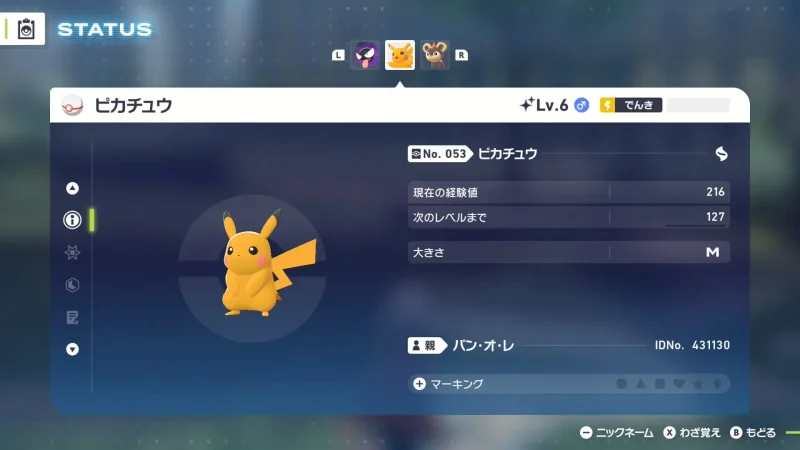 ここで重要なのが、ZAのバトルシステムにおけるピカチュウの立ち回りです。 ピカチュウは、とにかく耐久力がありません。 エアームドの「ドリルライナー」(まさか持っているとは思いませんでした)が直撃しましたが、ギリギリ耐えました。 これは、私が使用していたピカチュウがたまたま「おやぶん個体」で、通常より少し耐久が高かったおかげかもしれません。 (※ZAでは「おやぶん個体」は一部ステータスに補正がかかると言われています)