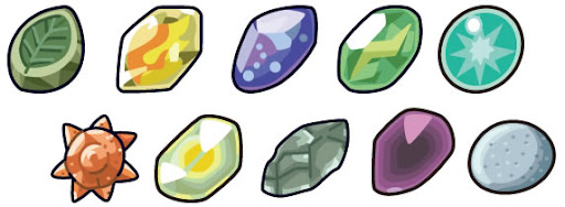 植物の生命力が凝縮された緑色の石。 主に、くさタイプのポケモンの進化に関わります。