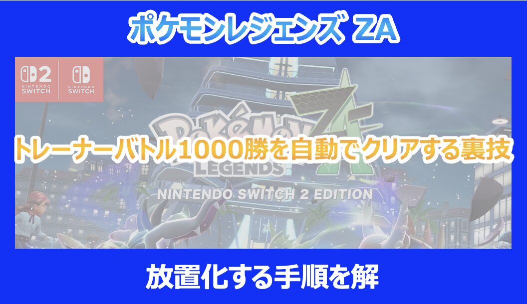 今回は、ポケモンレジェンズZ-Aにおける大きなやり込み要素の一つ、「トレーナーバトル1000勝」を放置でクリアするための方法を徹底的に解説しました。