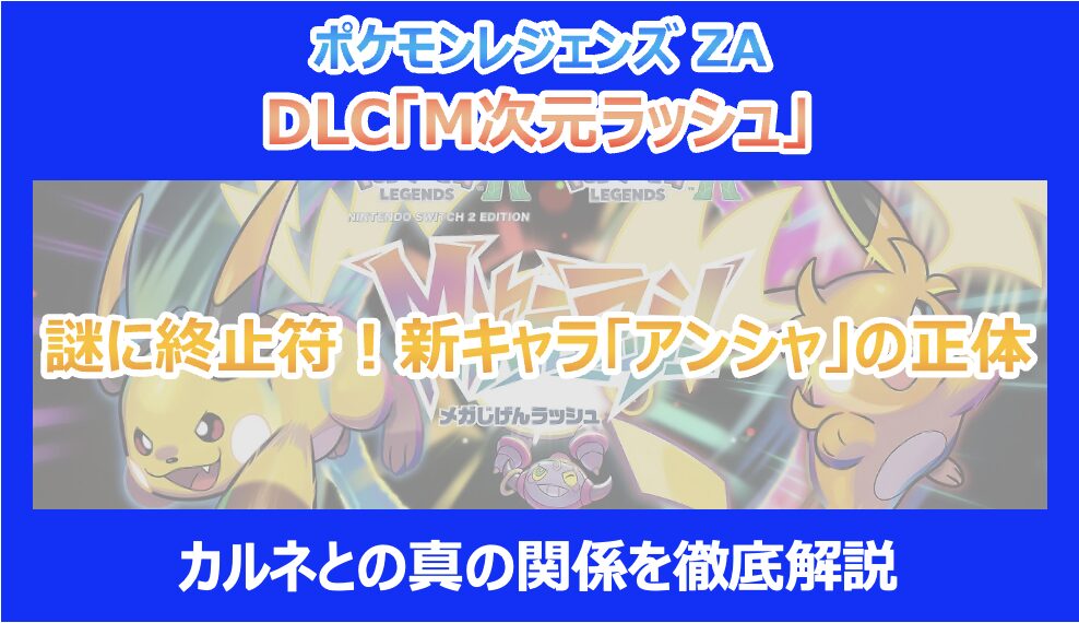 この記事を読んでいる方は、先日配信された『Pokémon LEGENDS Z-A』の大型DLC「M次元ラッシュ」に登場する新キャラクター「アンシャ」の正体や、彼女がなぜ異次元ミアレでドーナツを作っているのか、そしてカロス地方のチャンピオン・カルネとの関係が気になっていると思います。