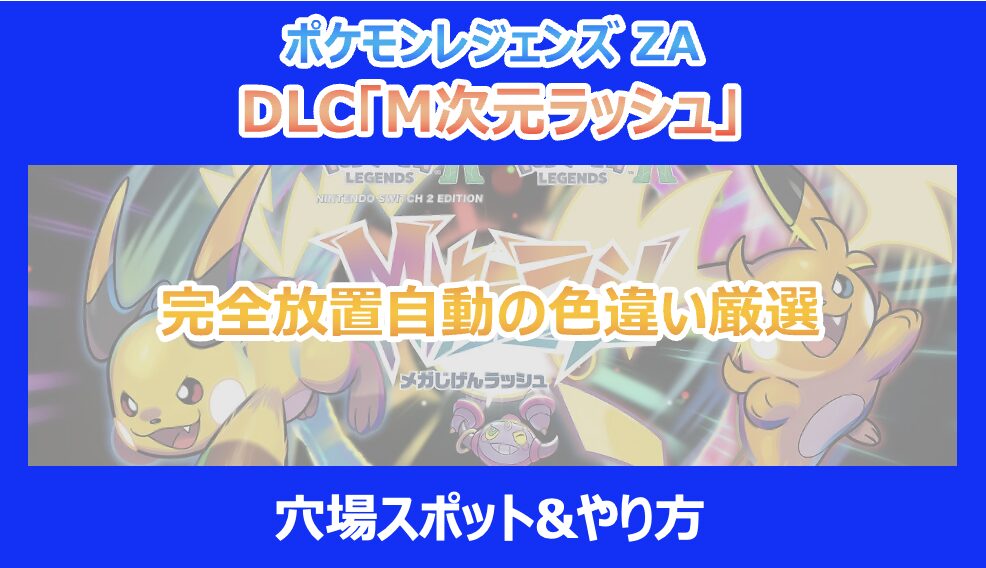 この記事を読んでいる方は、先日配信された『ポケモンレジェンズZ-A』の有料DLCコンテンツ「M次元ラッシュ」における、効率的な色違い厳選方法が気になっていると思います。特に、広大な「異次元ミアレ」で時間を無駄にせずに、かつ楽にレアな個体をゲットしたいと考えているのではないでしょうか。