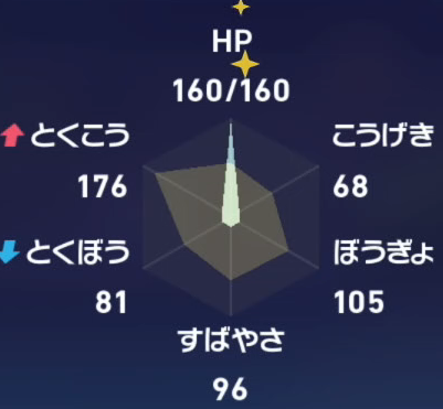 ステータス名の横が光っている場合 ここが最も重要です。例えば「こうげき」という文字の横がキラキラと輝いていれば、それは「こうげき」の努力値が252(最大)まで振られていることを証明しています。アタッカーを育成する場合、攻撃と素早さが光っている状態を目指すのが基本となります。