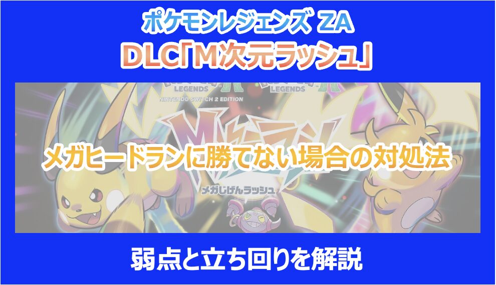 この記事を読んでいる方は、追加DLCコンテンツ「異次元ミヤレ」の深層で遭遇する、あの凶悪な「メガヒードラン」の攻略に苦戦し、どうすれば勝てるのか、どのポケモンを連れて行けばいいのかが気になっていると思います。
