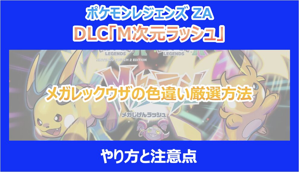 今回はM次元ラッシュのDLCにおける、メガレックウザの色違い厳選方法と攻略法を解説しました。