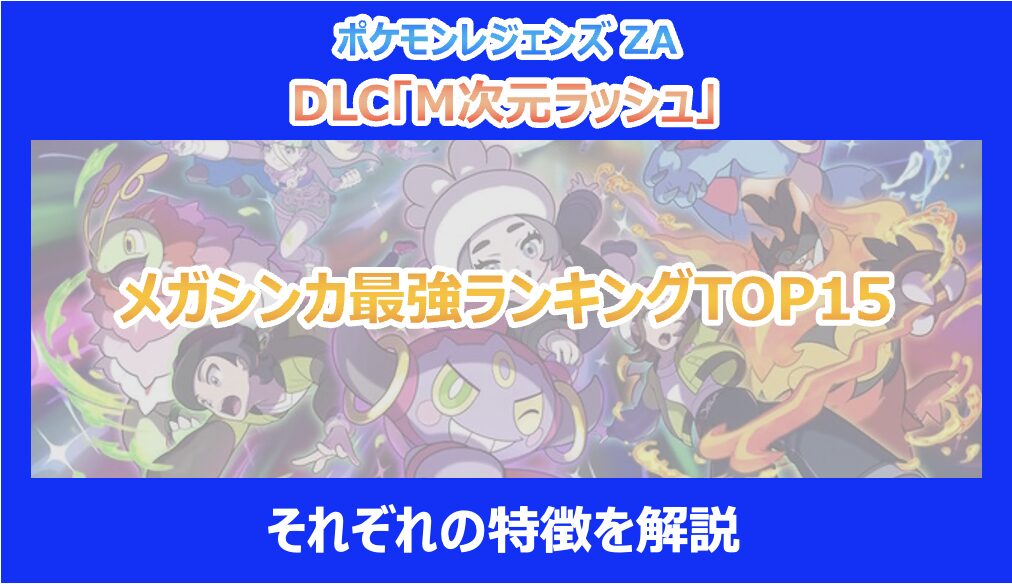 この記事を読んでいる方は、DLC「M次元ラッシュ」の高難易度バトルを勝ち抜くために、どのメガシンカポケモンを育成すべきか、その優先順位や性能の詳細が気になっていると思います。特に今作は特性が存在しないという特殊な環境下のため、純粋なステータスとタイプ相性が勝敗を分けます。